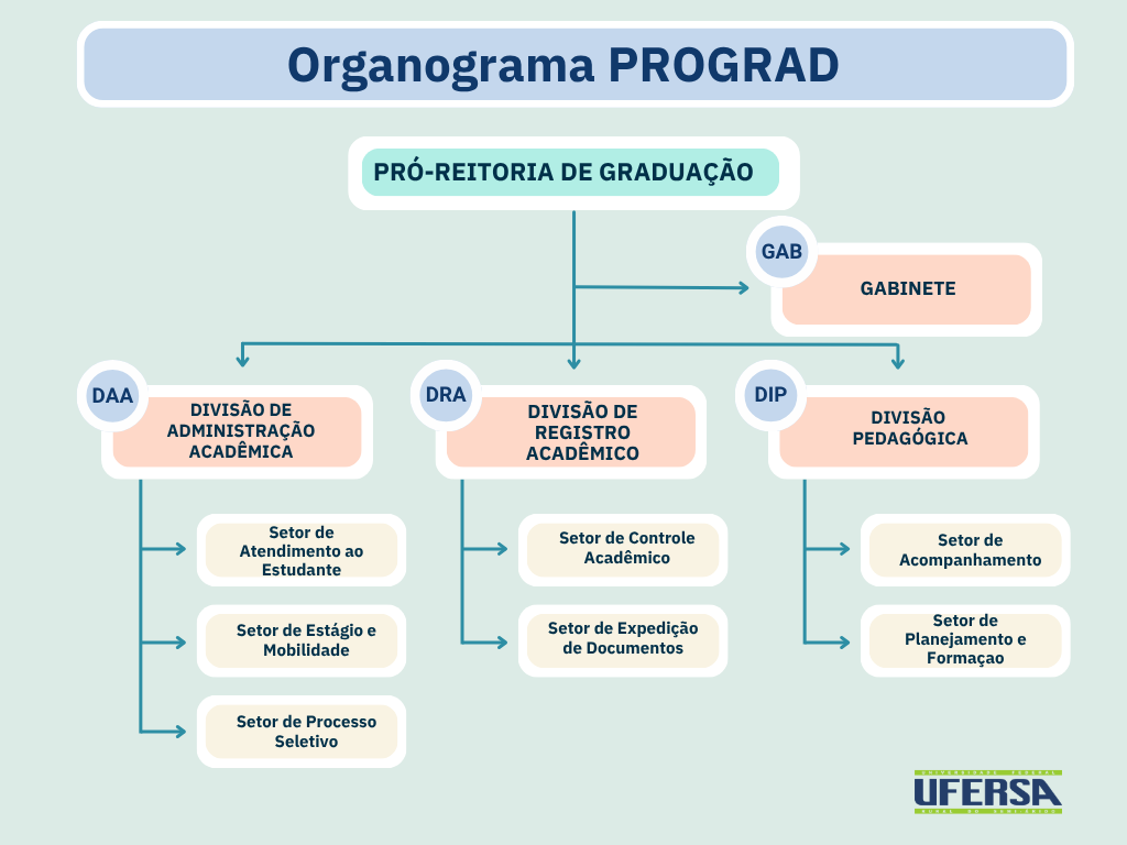 A Pró-Reitoria de Graduação (Prograd), diretamente subordinada à Reitoria, é o órgão responsável pela supervisão e pela coordenação dos cursos de graduação da Ufersa, e tem a seguinte estrutura administrativa: